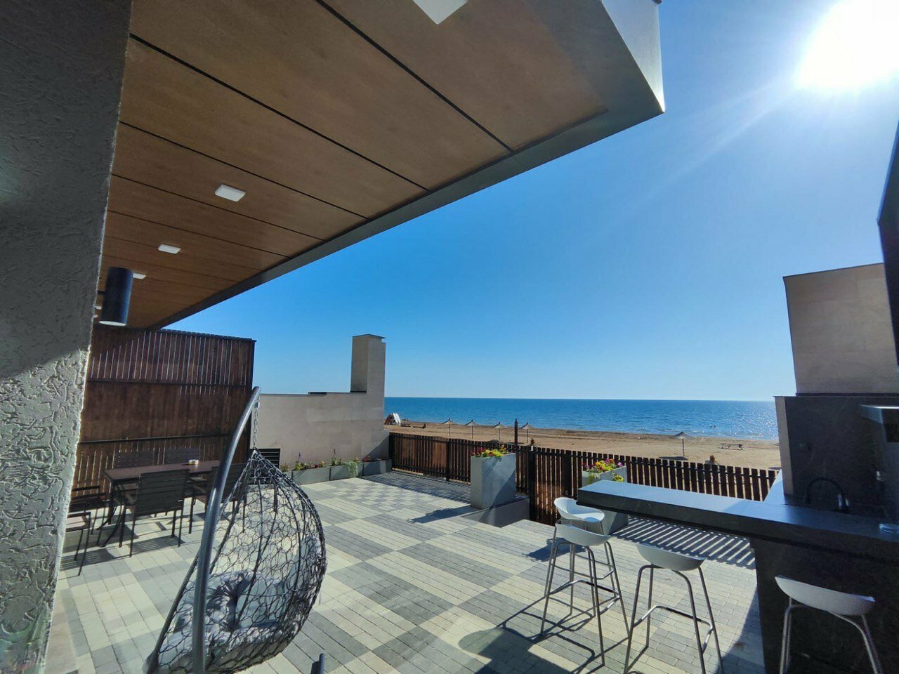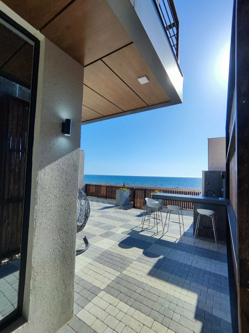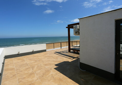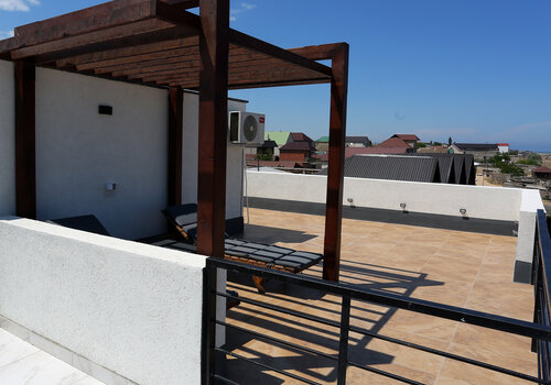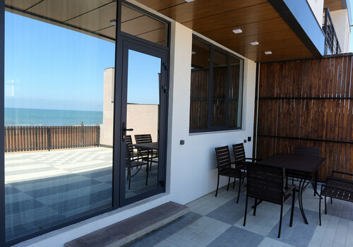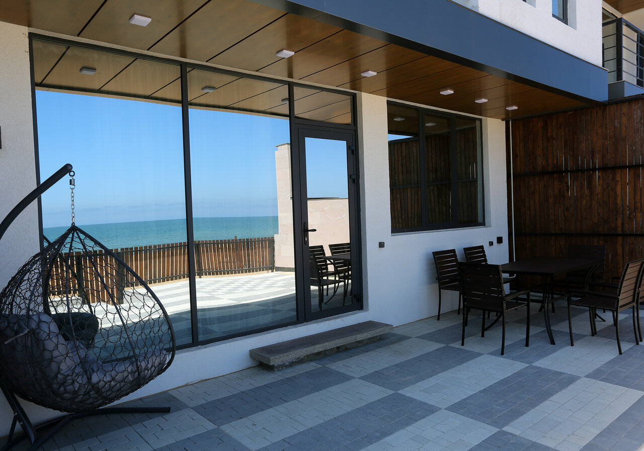Есть всё до мелочей , уютно , комфортно , современный дизайн. Даже верхний этаж, на крыше , чтоб можно было спокойно позагорать или поросто попить кофе с шикарным видом на море!