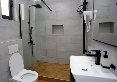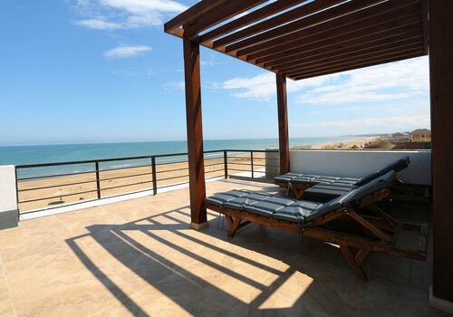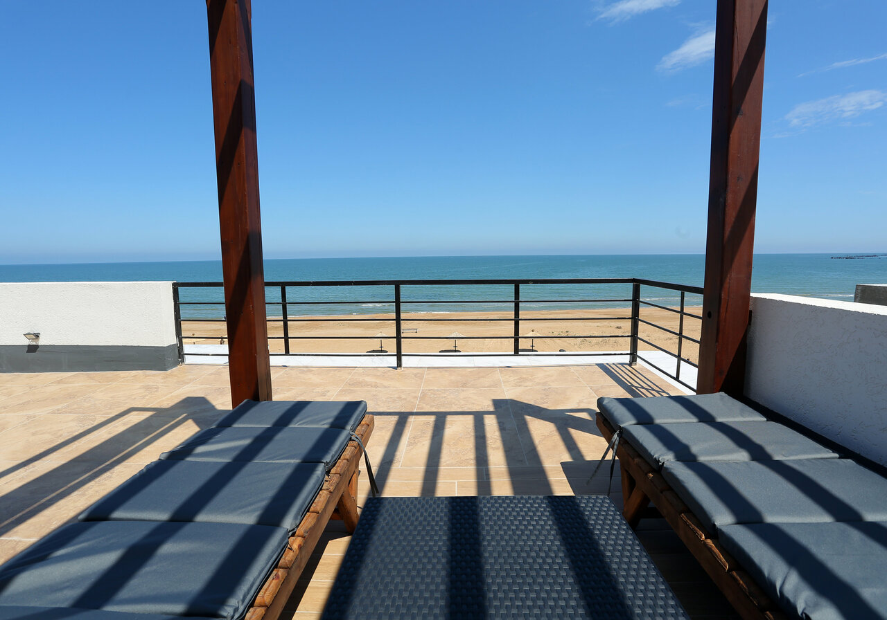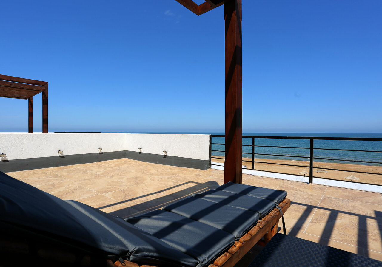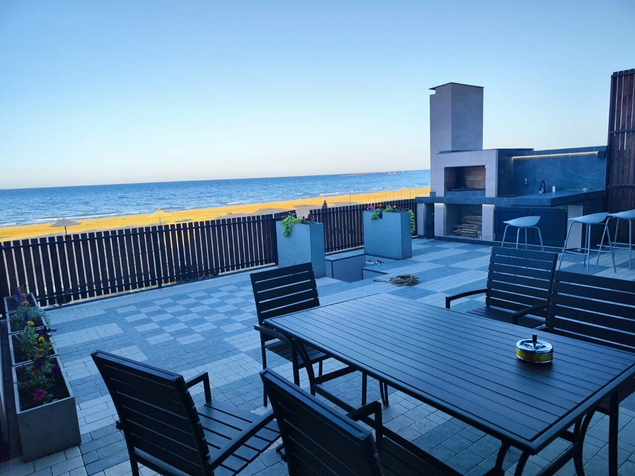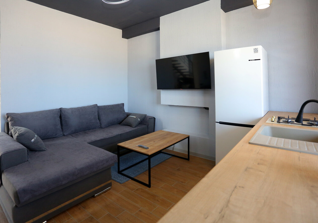 Есть всё до мелочей , уютно , комфортно , современный дизайн. Даже верхний этаж, на крыше , чтоб можно было спокойно позагорать или поросто попить кофе с шикарным видом на море!